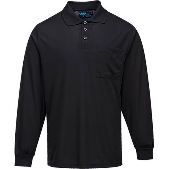 Breathable Micro Mesh Long Sleeve Polo.3 button closure and single breast pocket on left chest.Texpel treatment to protect from staining lock in colour and keep fabric cool.